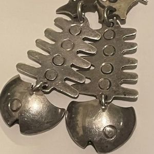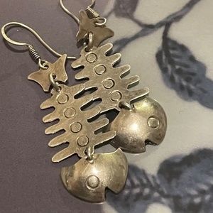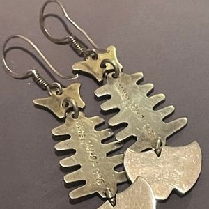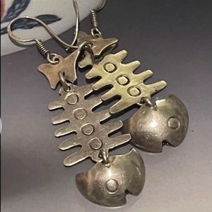 Striking Mexican Vintage Articulated Fish Skeleton Sterling Silver Dangling Earr