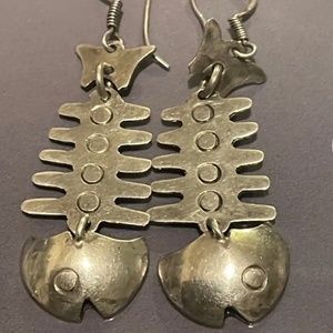 Unusual this pair of 3 dimensional earrings features two fish bone/skeleton, handcrafted in solid sterling silver with unique design from head to tail.
