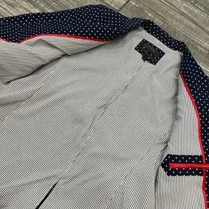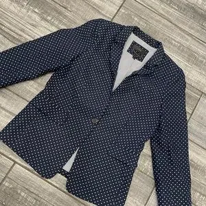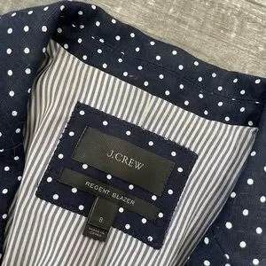J. Crew 100% Linen Navy & White Polka Dot Regent Blazer Jacket size 8