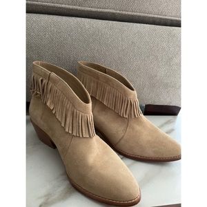 JOIE MAKENA BEIGE BUFF CALF SUEDE FRINGE ANKLE BOOTIE - EU 40 - US 9
