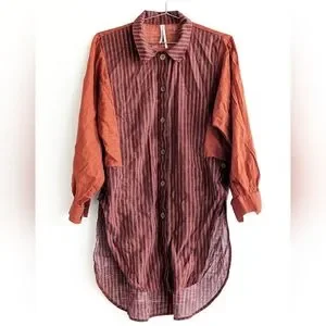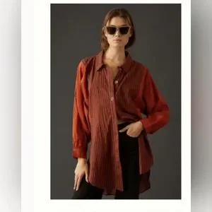 Anthropologie Gauze Dark Orange Collared Button Down Shirt Tunic