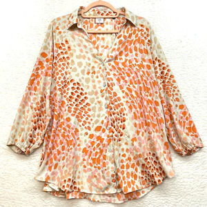 CAbi Shirt Womens Medium Orange Go To Blouse Animal Print Button Preppy Classic