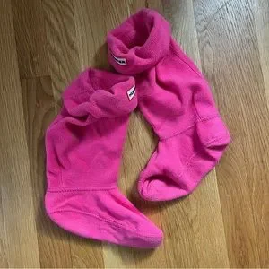 HUNTER Hot Pink Fleece High Socks - Children’s. Worn a few times but still in great condition besides one small stain. Can most likely come out in the wash. Size large.
