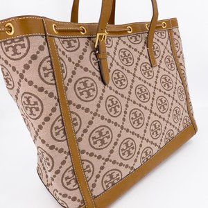Tory Burch T Monogram Jacquard Tote Hazel Brown