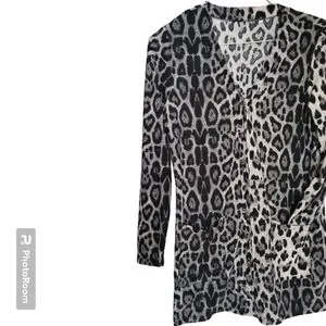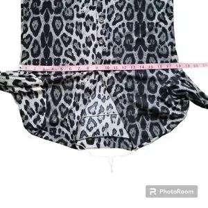 Black/Gray/White Button Front Top W Pockets. Size small. Cotton, polyester. Lightly used and in great condition.