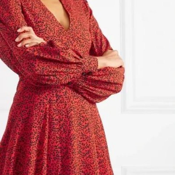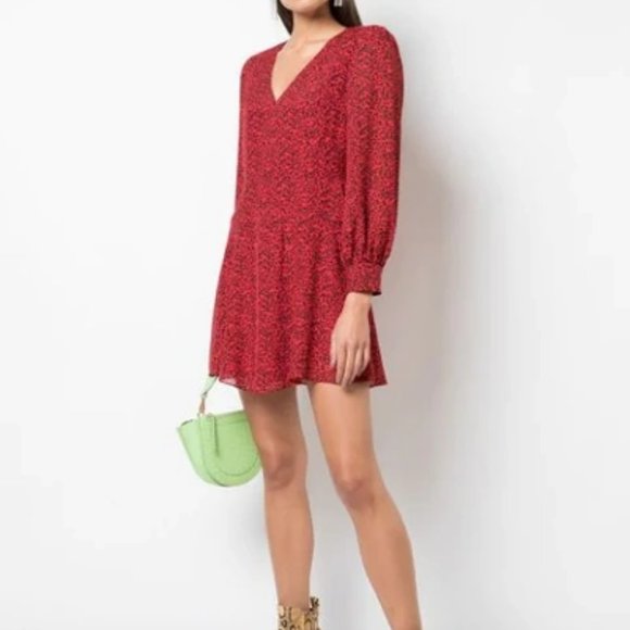 NWT$330 Alice + Olivia Polly Red Leopard Long Sleeved Fit & Flare Mini Dress 10