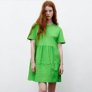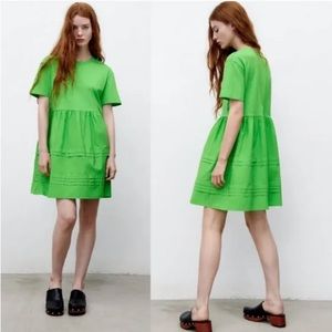 ZARA Green Pleated Babydoll Dress Bloggers Fav