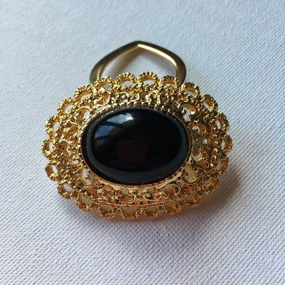 Excellent condition Vintage Park Lane scarf clip gold tone metal black Lucite Cabochon Oval stone Signed Park Lane ☀️ Bundle items from my closet to save on shipping & get a 25% discount ☀️