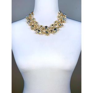 Natasha Gold Pearl & Clear Crystal Collar Chunky Statement Necklace NWT