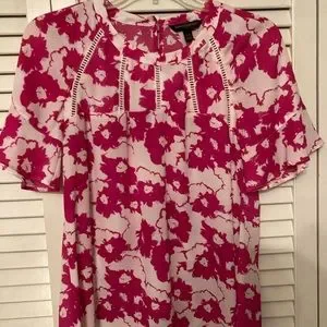 Banana Republic fushia/white top with ruffled sleeves and beautiful trim inserts. Worn once and is in excellent shape. Size PS. Paid $49. Asking $10