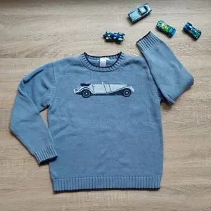 This listing is for a Janie and Jack car sweater in a size 7 in like new condition. I do not believe it was worn but washed twice. The color is a slate grey/bluish. The color varies slightly depending on how close I hold the phone when photographing. The closer I hold the phone, the more of a muted look it has bc of the light. I find it quite fascinating. I know nothing about photography but it seems like a topic I should delve into & investigate further. It seems the more I learn the less I actually know.