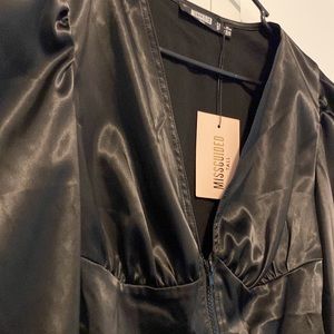 Misguided Long Sleeve black Satin blouse