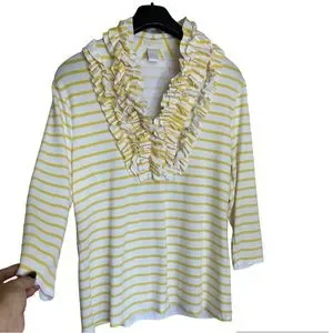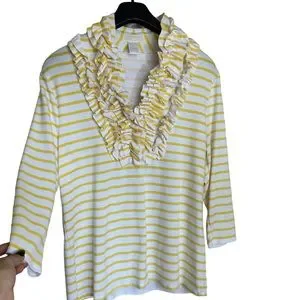 Christina Yellow Stripe Ruffle Neckline Business Casual Sweater