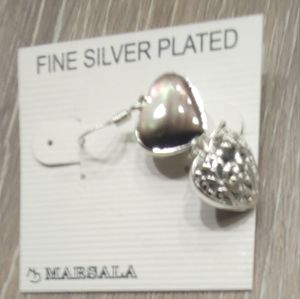 NWT Marsala Fine Silver Plated Women's Iridescent Heart Earrings. Rounded Designed Back. Protective Silicone Backs. .50 x .50 Inches.
