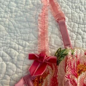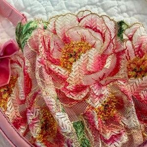 Everything's coming up roses. Blooming with lush embroidery, velvet bows, and ruffled elastic, this one is a fresh pick.