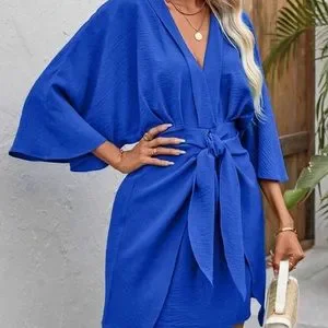 Batwing sleeve wrap knot front dress