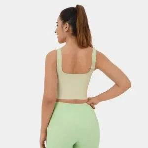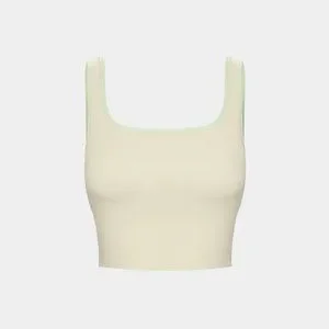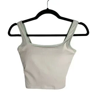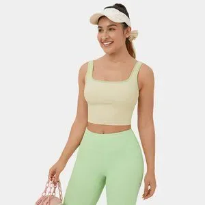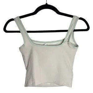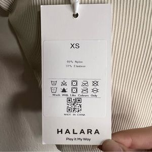 HALARA ribbed knit color block backless cropped yoga tank top in colorway White Asparagus. Brand new with tag in original packaging. Stock pictures showcase the color accurately.