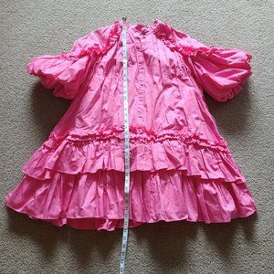 Good preowned condition. There is a faint makeup mark on the rim of the collar as pictured. The rest of the dress is in excellent condition.