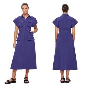 Leo Lin Sydney Women's Midi Dress Audrey Shirt Pocket Purple Belted Button Down A Line Retro 6 Small $615