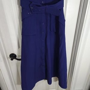 Style: Pockets / Shirt Dress / Full Button Down Front / Midi / Belted / Collared / A Line / Fit & Flare / Swing