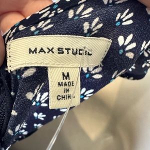 MAX STUDIO Jumpsuit Navy blue & tiny white flowers. Sleeveless, V neck with belt
