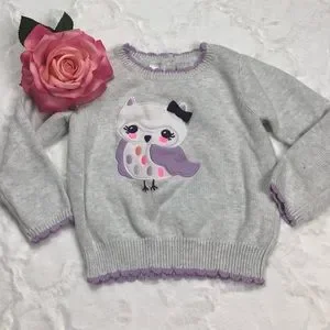 Gymboree Gray Owl Sweater in a Girls Size 2T. A precious hoot to your little one. This item is in excellent condition. I have examined it well and saw no stains, holes, or flaws. Your satisfaction is very important to me, please let me know if you have any questions before purchasing. Thank you for visiting my closet and Happy Poshing!!!