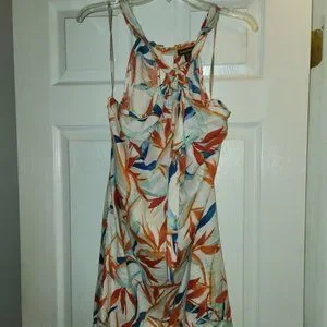 TOMMY BAHAMA Palms of Paradise Birds Floral Linen Halter Dress Size Small $128