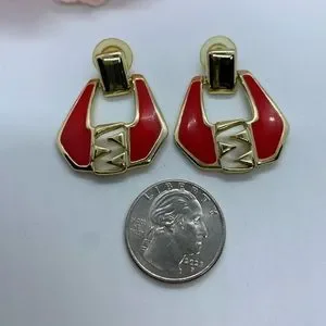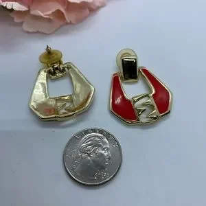 Vintage Red Enamel & Gold Tone Estate Earrings in good vintage condition 000221