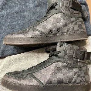 Men’s size 9 Louis Vuitton shoes. The shoes have been worn before but are in good condition. There is some minimal wear on the side of soles. Inside of shoes are in very good condition. Shoes are authentic and come with box and dust bags.