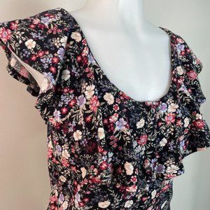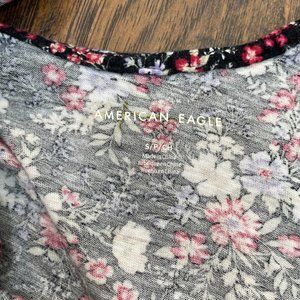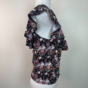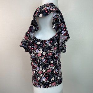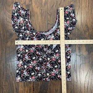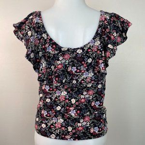 American Eagle Crop Top Small Black Floral Flutter Sleeve Cotton Casual Women's