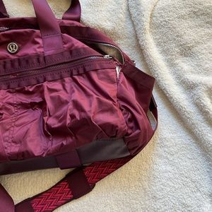 Lululemon Gym To Win Duffel In the color Wine Berry / Bordeaux Drama