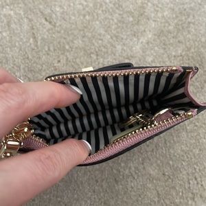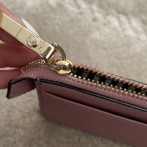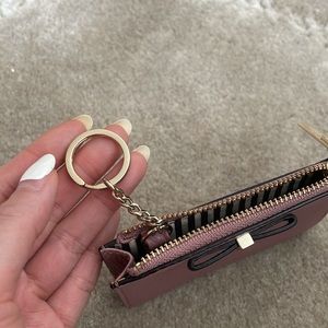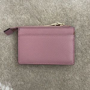Kate Spade pink coin purse and cardholder. Great for keeping loose change or your cards! There’s a cardholder in the back as well. Hardly used so the inside is clean. Minor scratches on the front bow and zipper. Smoke free and pet free house.