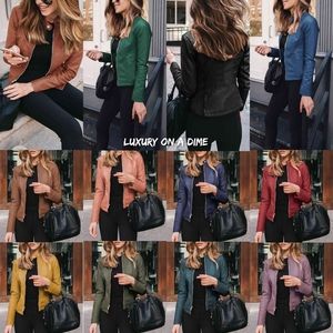 Chic Moto Vegan Leather Jacket Zip-up Sleek Snap Mock Neck