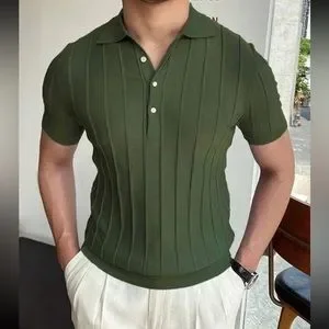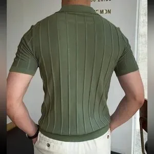 Men’s button v neck collared polo short sleeve rib knit shirt