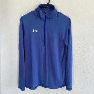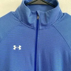 Under Armour Heat Gear 1/4 zip blue gray stripe loose Size M
