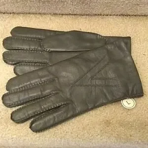 Grey leather gloves with sweater knit cashmere lining. New, received as as gift and never used. soft supple leather and soft as a cloud cashmere lining.