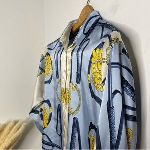 ZARA Chain Printed Blouse Size M Elegant Vintage Scarf Feminine Worn on TV