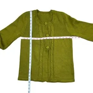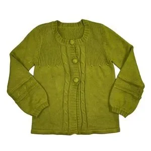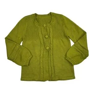 Ornate Bell Sleeve Knit Cardigan Small Chartreuse Green
