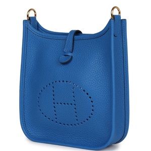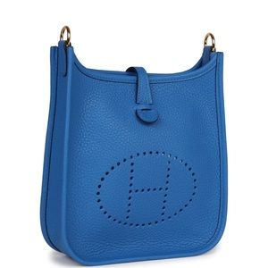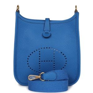 NEW Hermès Evelyne TPM Bleu Zellige Clemence Gold Hardware Crossbody Bag