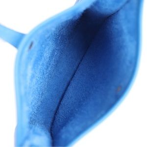 This Evelyne is in Bleu Zellige clemence leather with gold hardware and has tonal stitching, pull tab top closure and a Bleu Zellige removable canvas and leather shoulder/crossbody strap.
