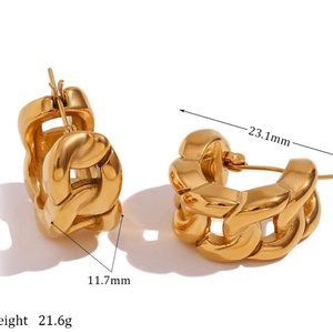NEW CHUNKY HOOP 18K GOLD CUBAN CHAIN EARRINGS, BEAUTIFUL EARRINGS, CUTE EARRINGS
