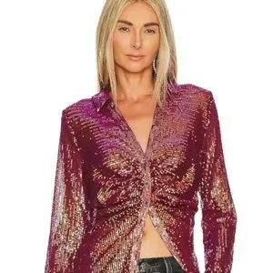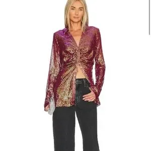 BNWT! Free People Sheer Sequin Shirtee Top in Dark Rhubarb Size XS