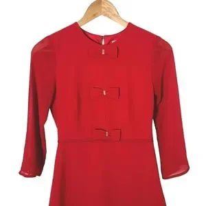 TED BAKER Red Finna Bow Detail Mini Dress Women's Size Ted 0/ US 2