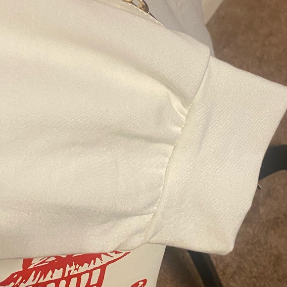 White Asian themed T-shirt style dress. Light fleece type material. Dress is mid thigh length. There is a very light make up stain on the collar from trying to dress on. It is new without tags and has never been worn. It is too big for me Tag says medium, but this is an oversized dress so it fits larger. Dress will come with the exact themed style Crossbody bag. Will only sell together as a set. The bag comes with the detachable gold chain. The bag is being pictured with the remote control and a large three wick candle just to compare size. The bag is 6 inches in depth, and 6 inches wide. It is a large type Crossbody bag that will hold a cell phone makeup, coin, purse, and much more. Thank you for checking out my closet.