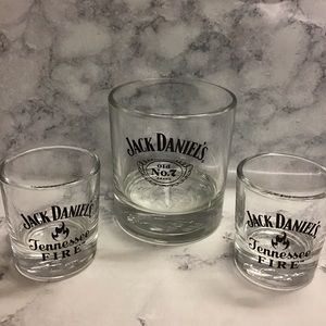 Jack Daniels double shooter glass & two Tennessee fire 🔥 shot glasses
