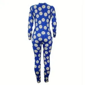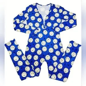 Made with 6 fabric, this jumpsuit is perfect for lounging or sleeping. Easy to wear button closure makes it easy to get off/on. V-neck long sleeve royal blue size ladies xl/12 see size chart for measurements