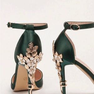 Metal Flower Detailed High Heels, Pointed Toe Silk One-Strap Sandals, Wedding
