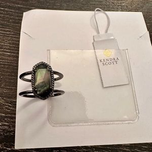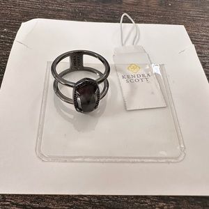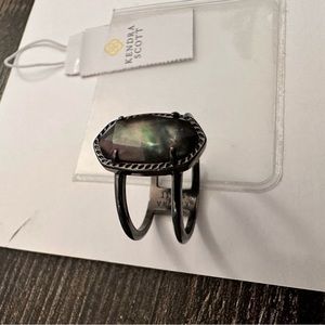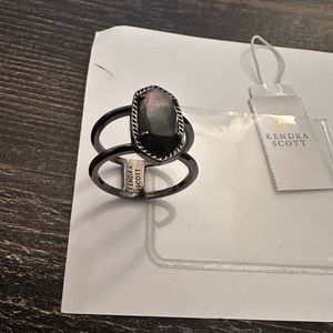 Kendra Scott Elyse Double Band Ring in Gunmetal with Black Mother of Pearl (size 7-8)