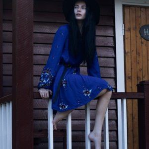 Free People Oxford Embroidered Floral Mini Dress Size Medium Blue