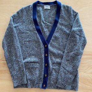 Beautiful 100% merino wool cardigan. Black and white with Navy trim, buttons with neon orage thread.
